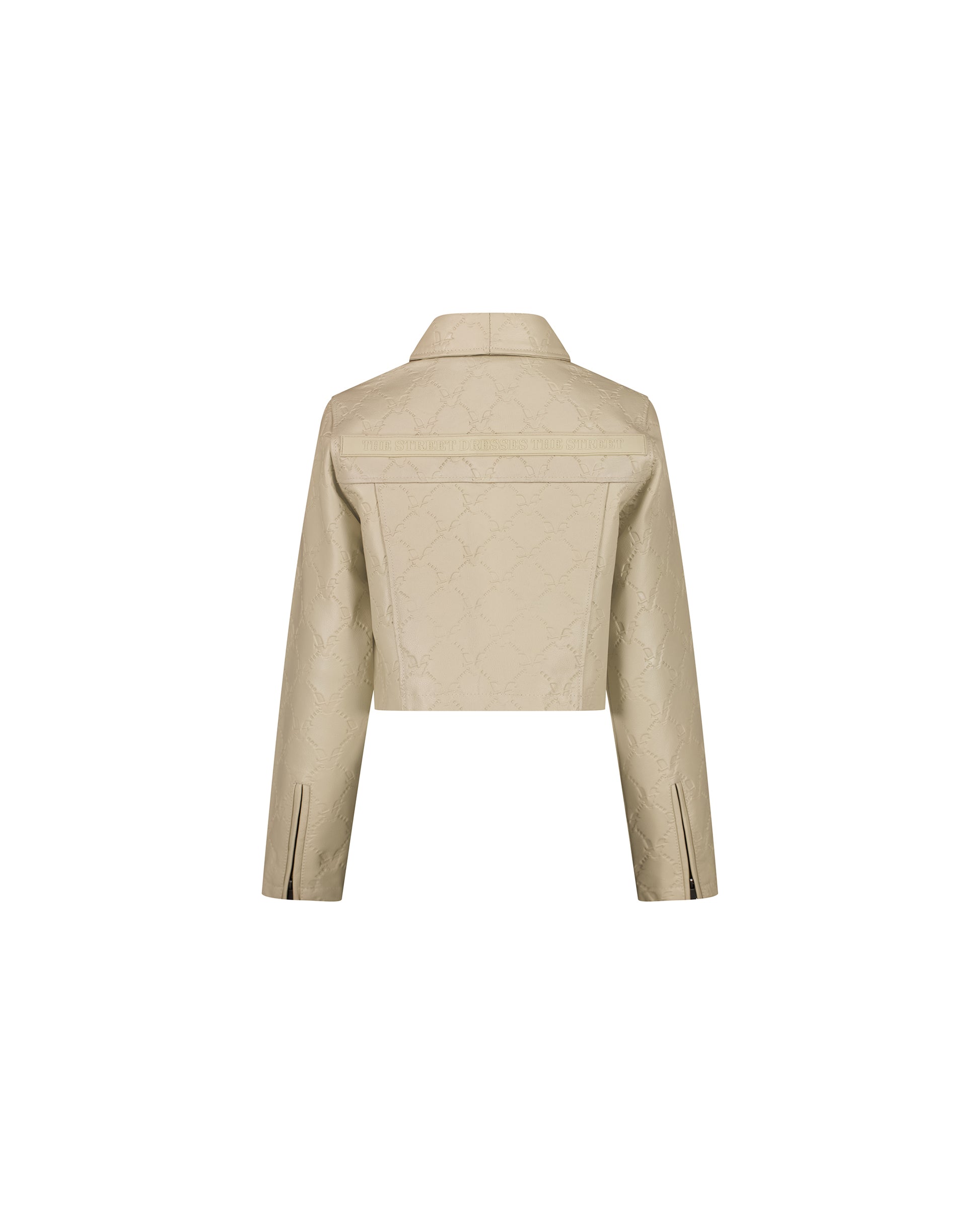 Cette sublime veste courte en cuir lisse se distingue par le monogramme VERON subtilement embossé, signature emblématique de la marque. Ses lignes épurées , rehaussées de poches fendues, allient esthétisme et fonctionnalité. Coupe droite classique et allure intemporelle, elle sublime chaque silhouette et se porte idéalement avec la jupe CHRISTELLE assortie.